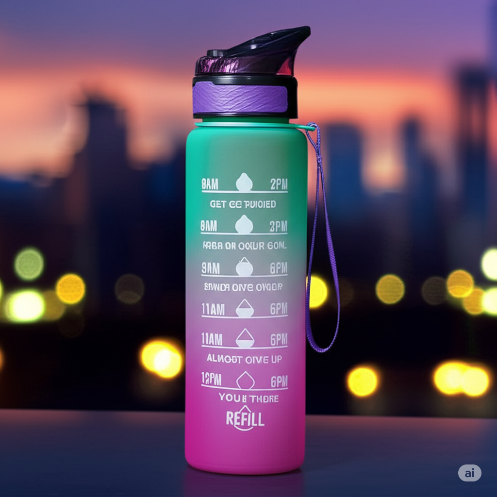 Transform your hydration routine with our premium motivational water bottle featuring inspiring time markers and uplifting quotes. This 32oz (1 liter) BPA-free sports bottle is designed to keep you on track with your daily water intake goals while providing the motivation you need to push through your day.